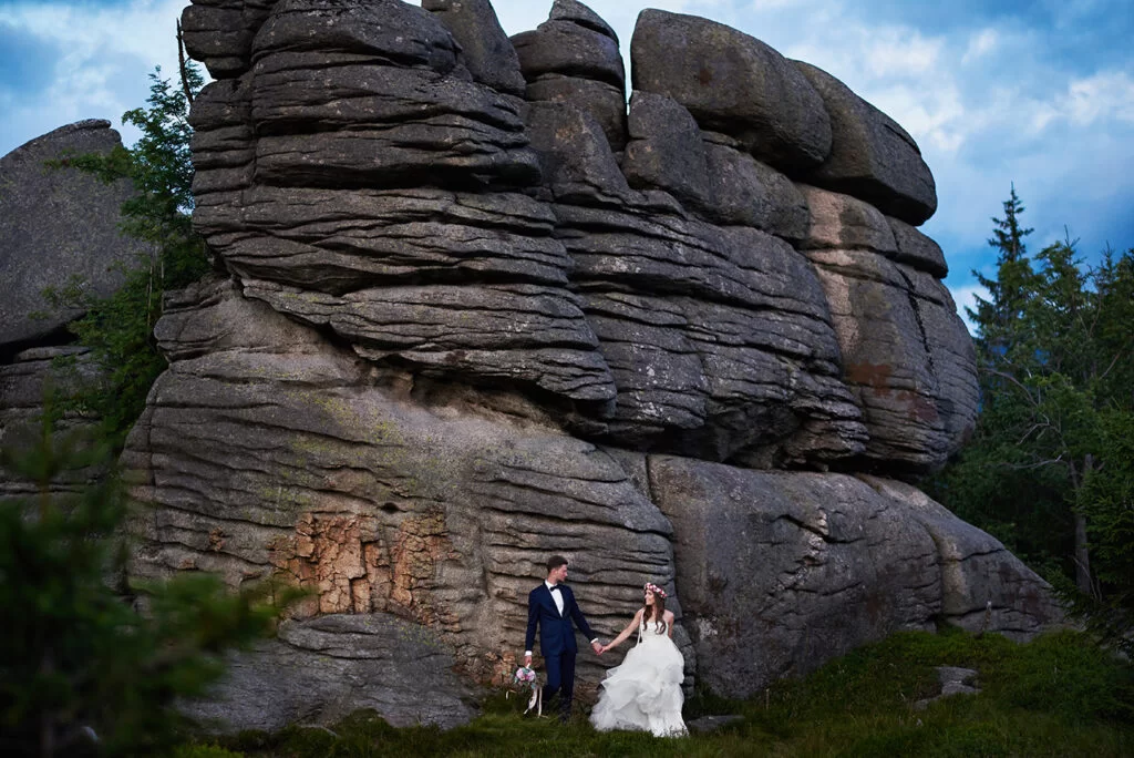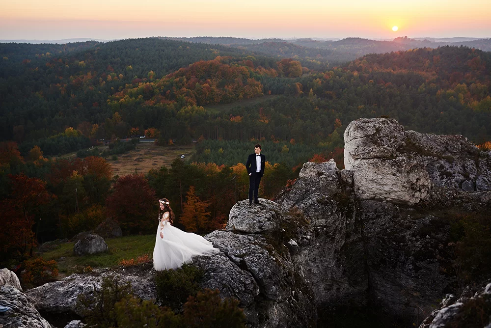 Jeśli wolicie surową przyrodę, sesja w skałach może być znakomitym wyborem. Kontrast między twardością skał a delikatnością waszych emocji stworzy unikalny efekt w zdjęciach.